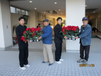 日吉地区自治会様から、ポインセチアの鉢植えをいただきました。